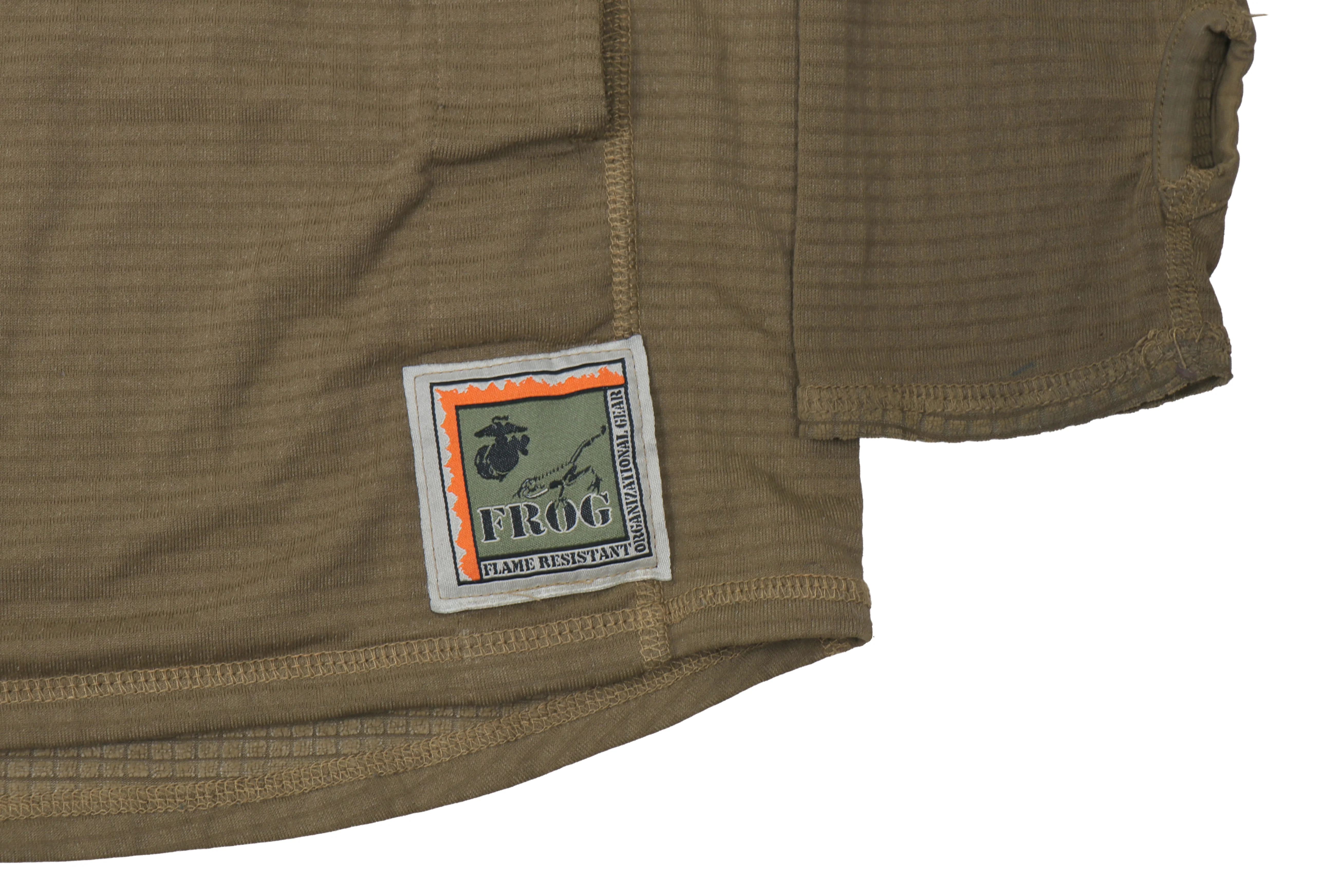 The USMC FROG waffle fleece is a lightweight insulating mid layer constructed from flame resistant grid fleece. It is designed for breathability and warmth while fitting comfortably under body armor or outer layers.
